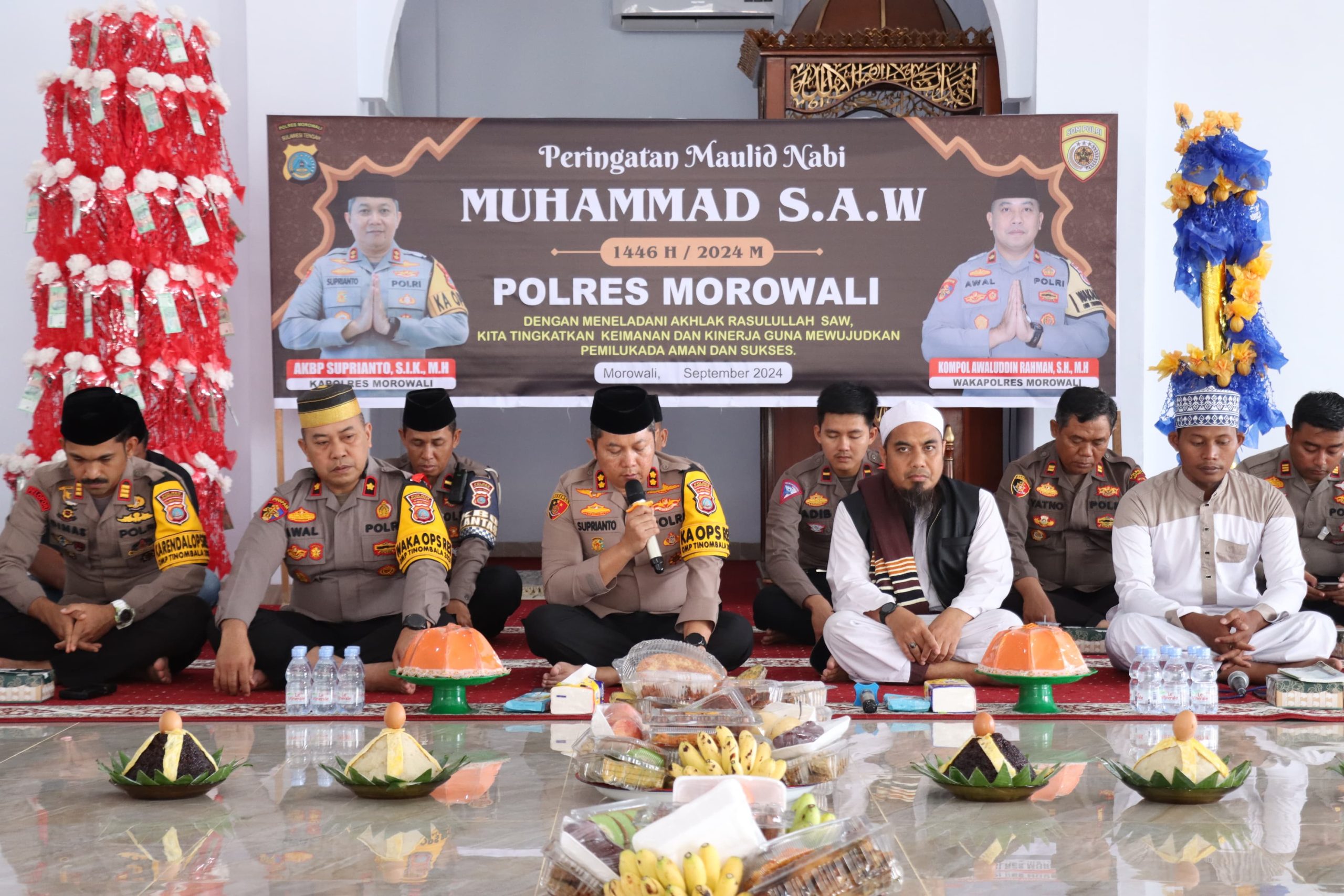 Acara dimulai dengan pembacaan ayat suci Alquran dan pembacaan Maulid Nabi Muhammad SAW. Dalam sambutannya, Kapolres Morowali, AKBP Suprianto, menyampaikan rasa terima kasih kepada seluruh pihak yang berkontribusi dalam menyukseskan acara ini. Ia menekankan pentingnya meneladani akhlak mulia Rasulullah SAW untuk meningkatkan kedisiplinan, kepribadian yang baik, serta kinerja optimal bagi anggota Polres Morowali.