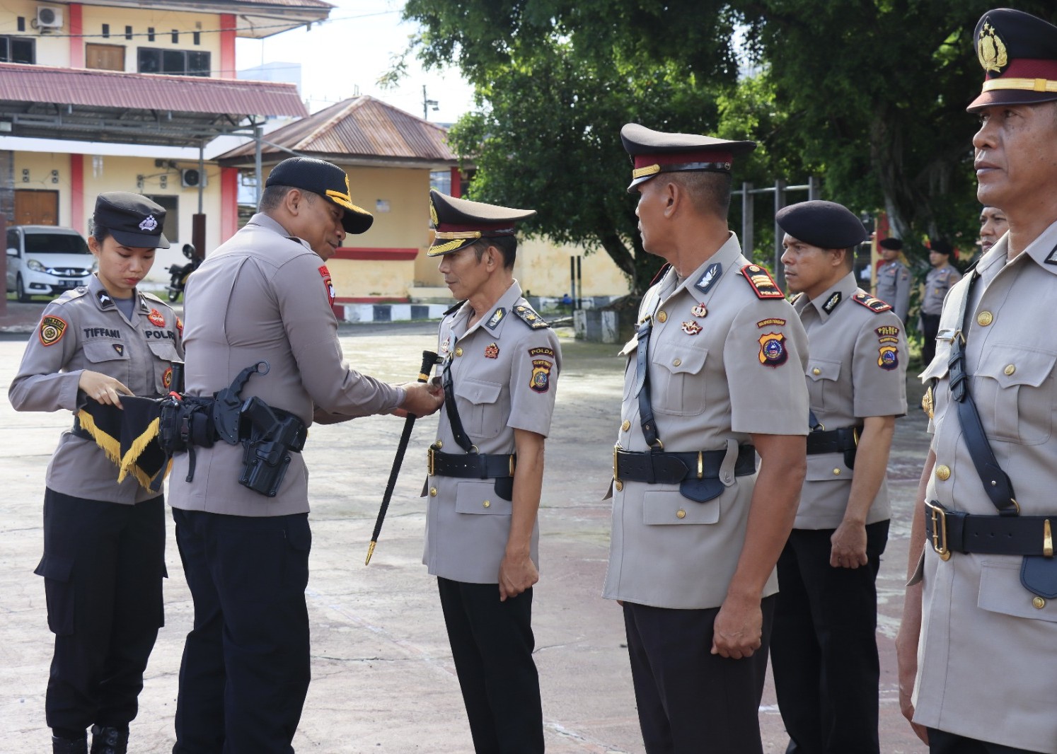 Pengambilan sumpah dan jabatan serta Penandatanganan Pakta Integritas oleh pejabat baru dan pejabat lama,serahterima Jabatan yang diikuti oleh peserta upacara para perwira,personil Polres Poso dan Bhayangkari Cabang Poso,hadir bersama Ibu Ketua Bhayangkari Cabang Poso.