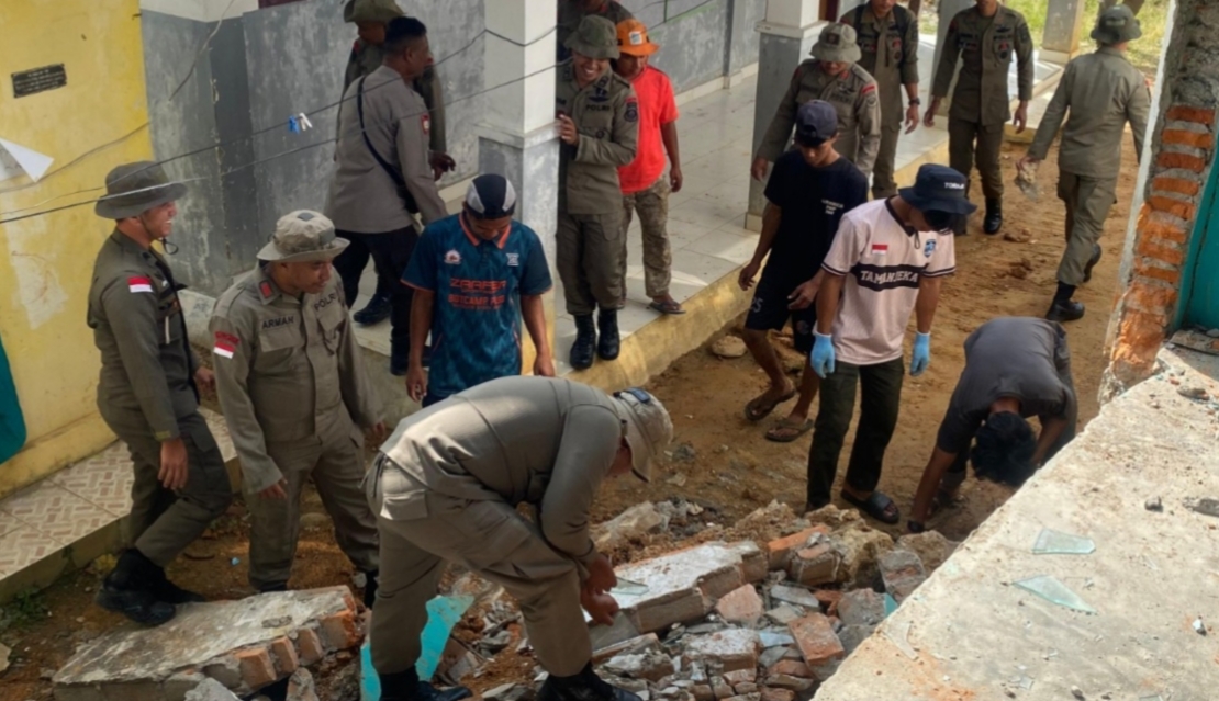 Kegiatan ini melibatkan personel dari Pos Kamtibmas Tamanjeka serta Tim Alfa 1 dan Alfa 2, yang secara bersama-sama membersihkan reruntuhan bangunan, termasuk meja dan kursi yang terdampak gempa.